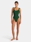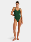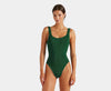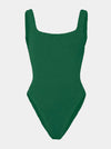 hunza g square neck metallic forest green one piece